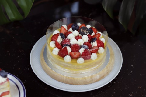 上頭裝飾以豐盛的新鮮草莓藍莓